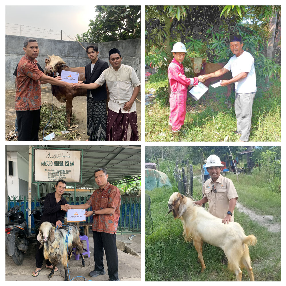 To celebrate the holy day of Eid al-Adha 1446H (2025), Apexindo donate three cows and three goats to be sacrificed in the holy day of Eid Al Adha to the mosques and boarding school around Apexindo’s head office in Jakarta, Apexindo’s Balikpapan branch Office, Apexindo’s warehouse in Muara Badak (East Kalimantan), Apexindo’s warehouse Handil (East Kalimantan), Apexindo’s warehouse Bojonegara (Banten), and also Daarul Rahman Boarding School in Jagakarsa, South Jakarta.