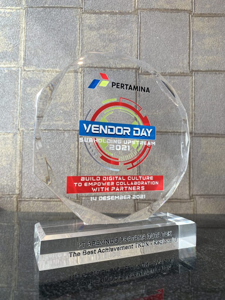 Jakarta – As the Company’s commitment to maximize domestic workers over than expatriate in every the Company’s operational aspect. During the Vendor Day 2021 event that held by Pertamina Hulu Energi (PHE), Apexindo won an award as Best Achievement TKDN in PHE’s regional 3 operational area. PHE assess that Apexindo always scored more than its commitment during the tender process.